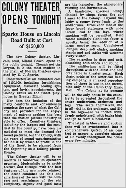 Colony Theater on Lincoln Road opens - Jan. 1935